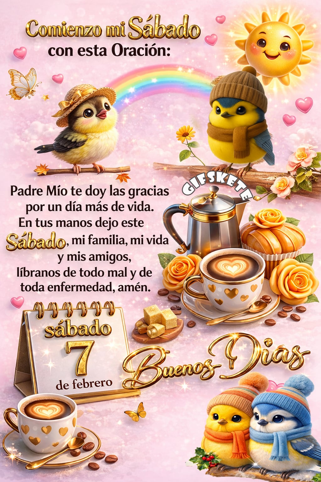Comienzo mi Sábado con esta Oración: Padre Mío te doy las gracias por un día más de vida. En tus manos dejo este Sábado, mi familia, mi vida y mis amigos, líbranos de todo...