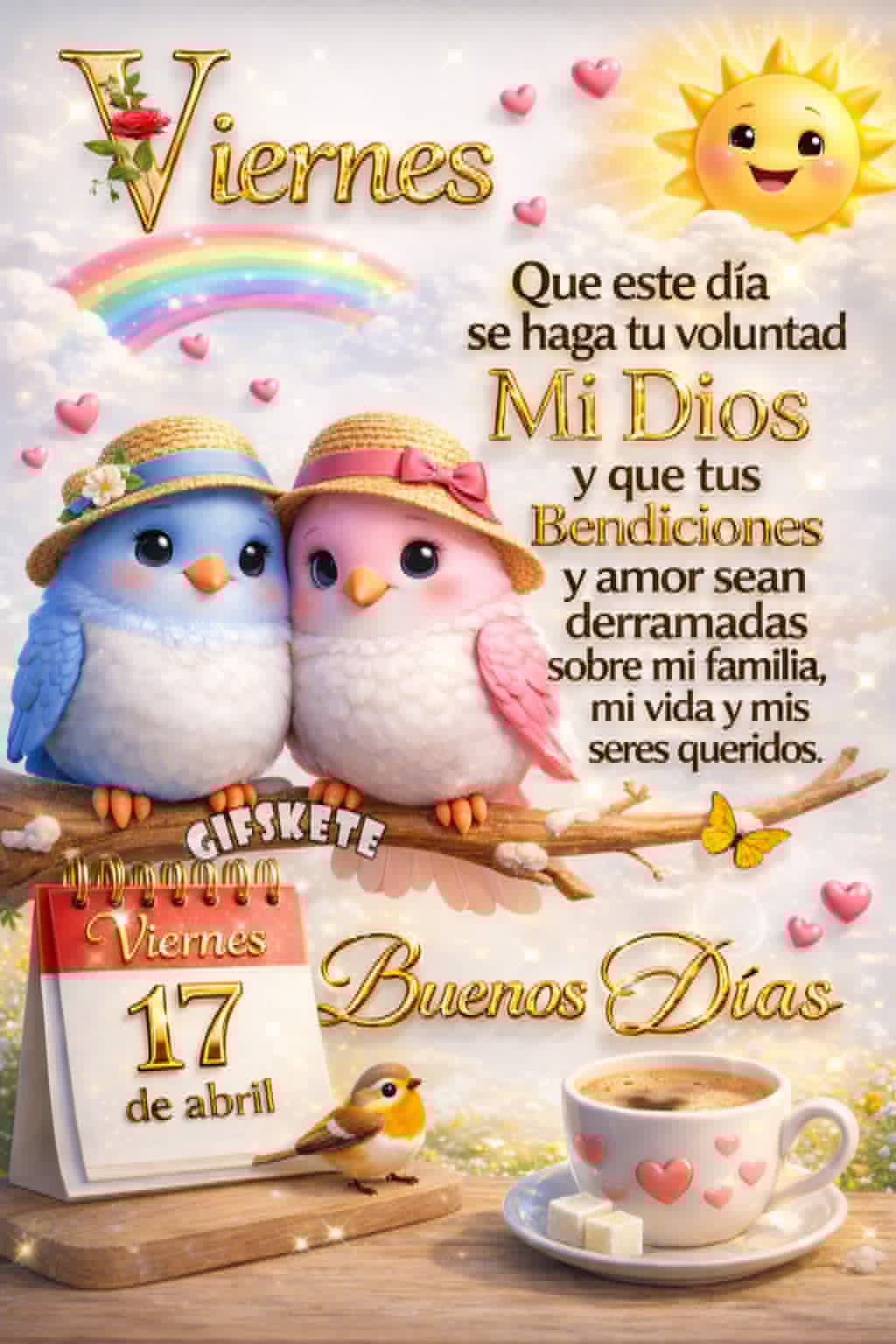 Viernes Que este día se haga tu voluntad, mi Dios, y que tus bendiciones y amor sean derramados sobre mi familia, mi vida y mis seres queridos. Buenos días. Spread the love
