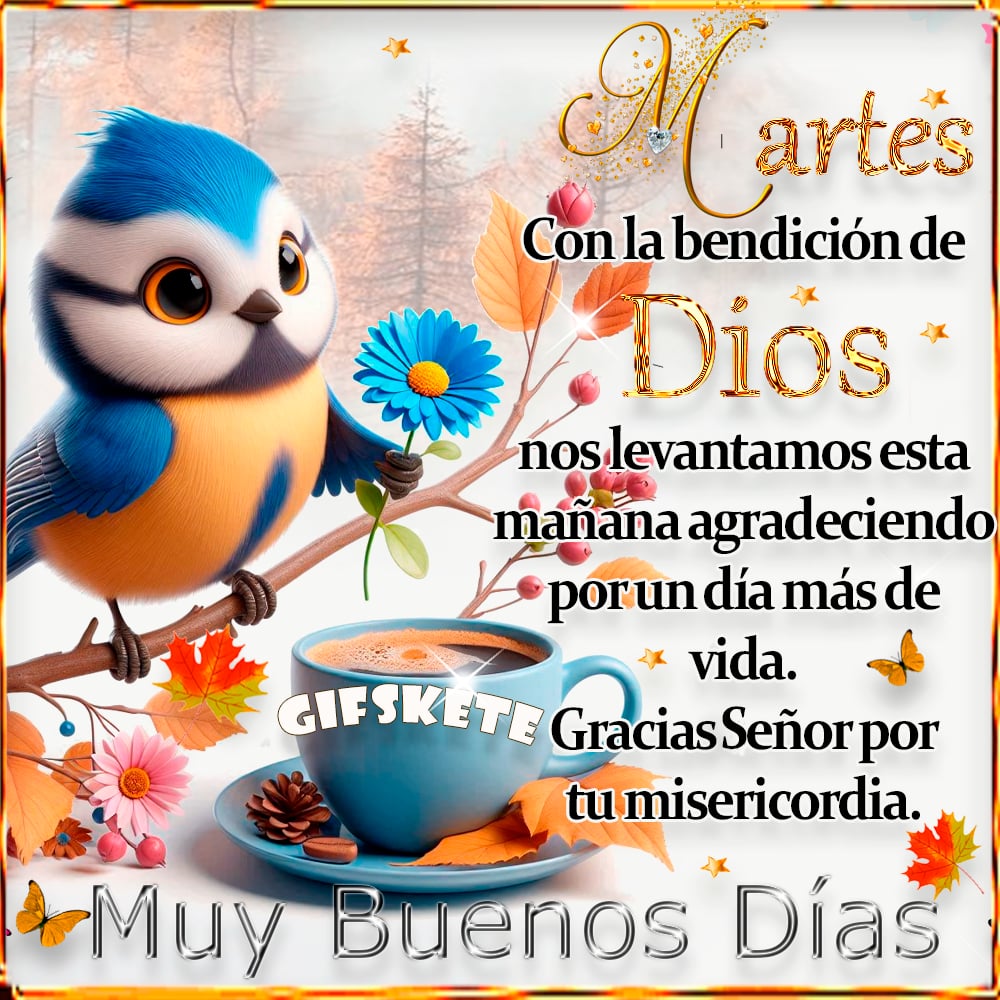 Martes Con la bendición de Dios nos levantamos esta mañana agradeciendo por un día más de vida. Gracias Señor por tu misericordia. BUENOS DIAS…