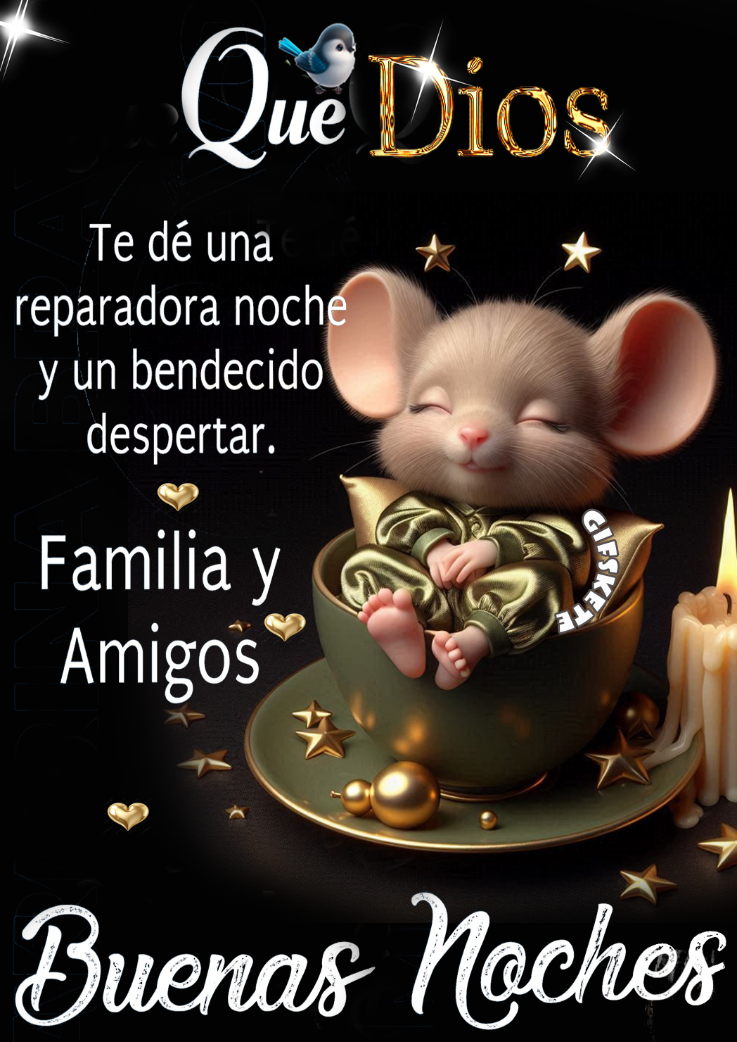 Que Dios… Te dé una reparadora noche y un bendecido despertar. Familia y amigos. Buenas noches.