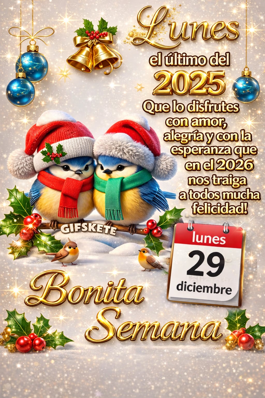 Lunes el último del 2025 Que lo disfrutes con amor, alegría y con la esperanza que en el 2026 nos traiga a todos mucha felicidad! Bonita Semana