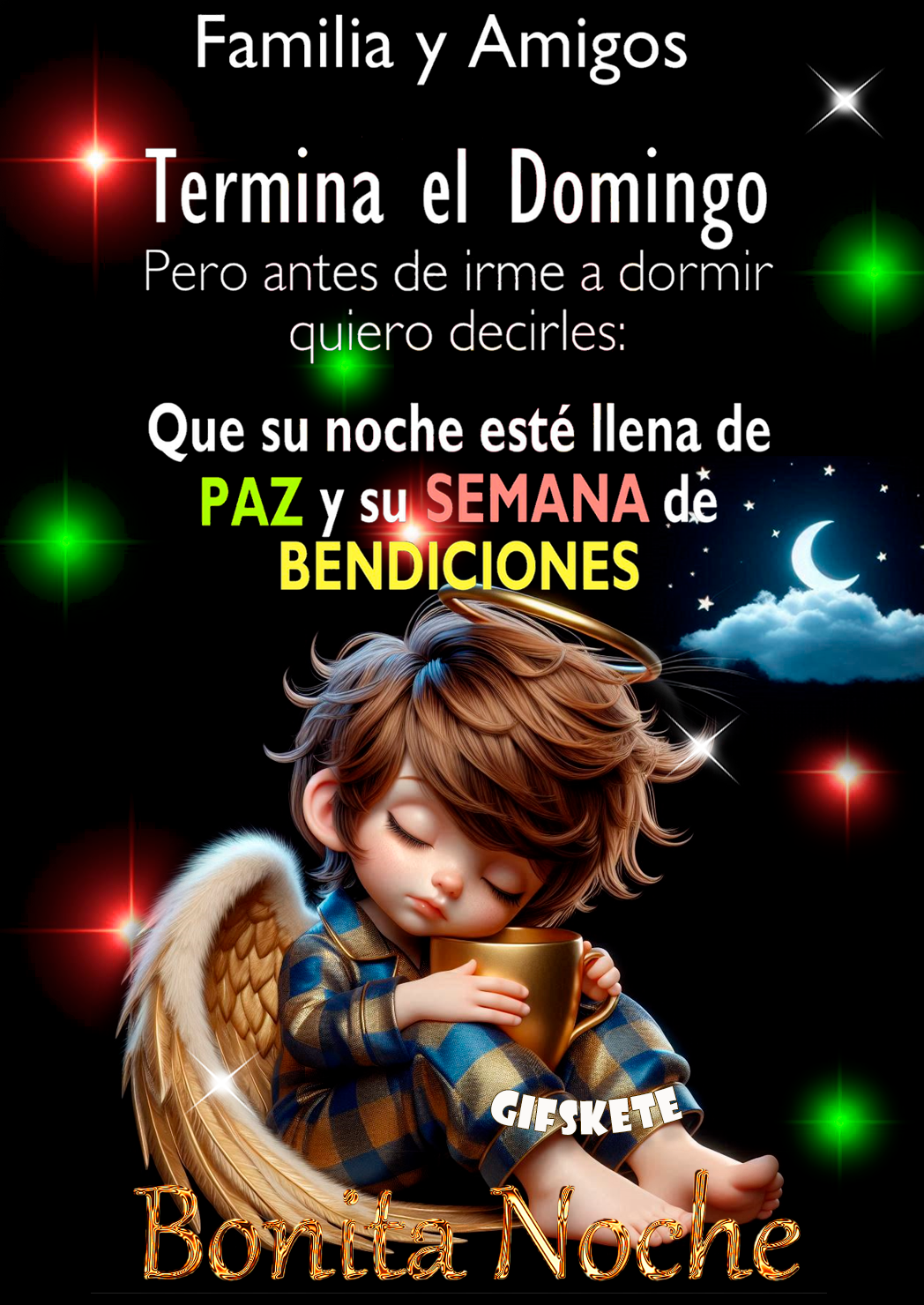 Que esta noche Dios Los abrace con su dulce y magnífico amor, los proteja de todo mal y Bendiga su despertar. Buenas noches!