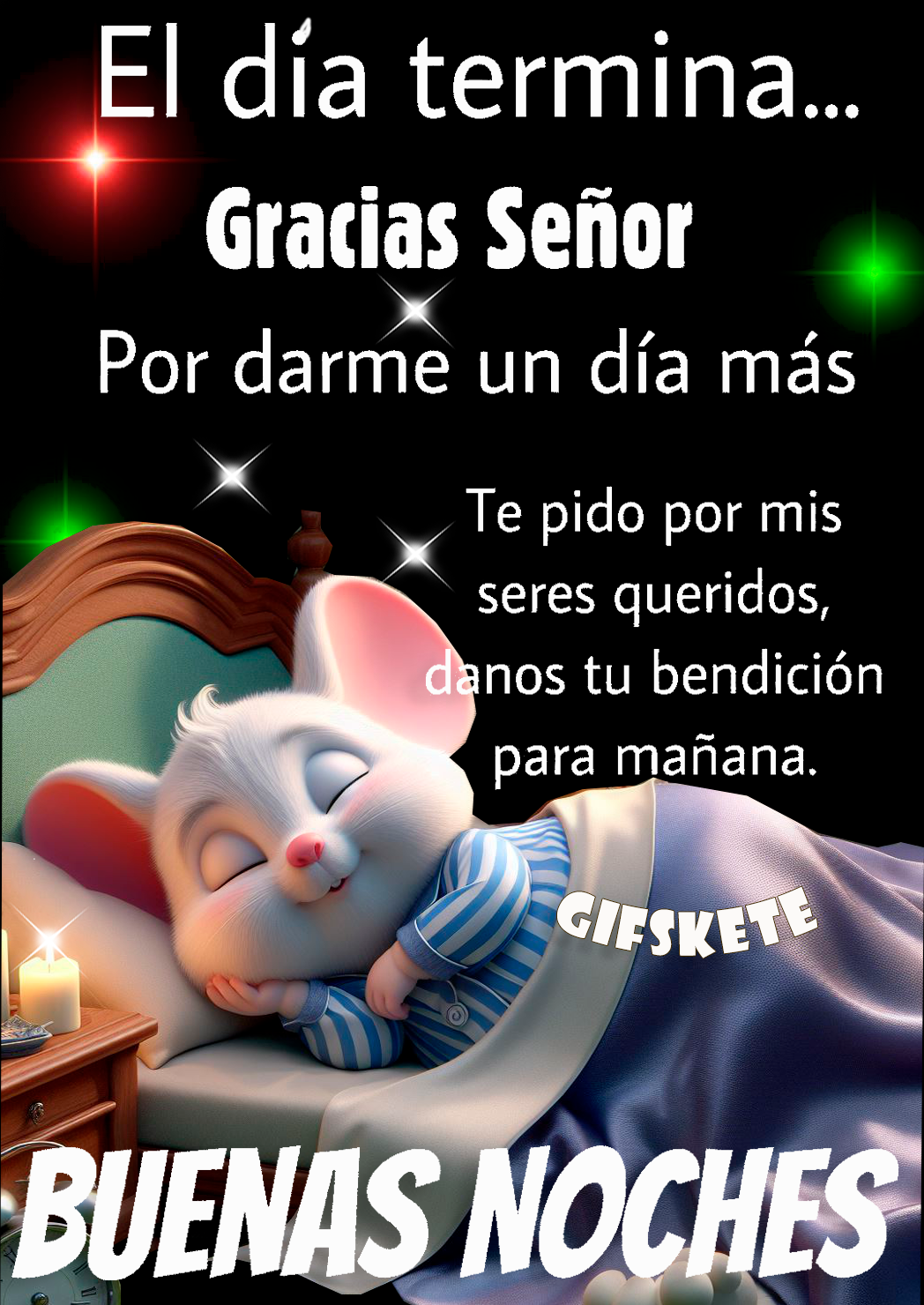 Padre, antes de dormir te pido: Danos tu bendición y mantén a mi familia y a mi lejos de todo mal. Amén!! Buenas noches!
