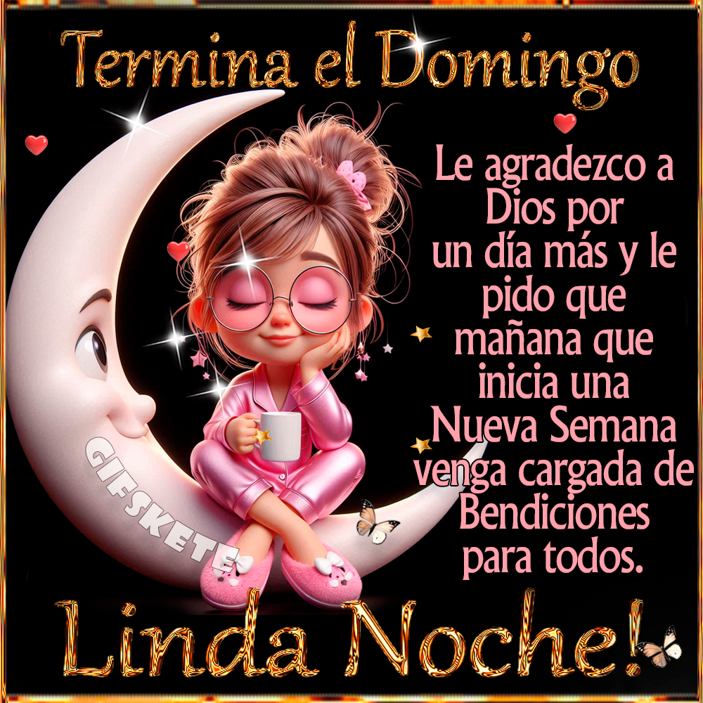 El domingo termina Le agradezco a Dios por un día más y le pido que mañana que inicia una Nueva Semana venga cargada de Bendiciones para todos. Buenas Noches