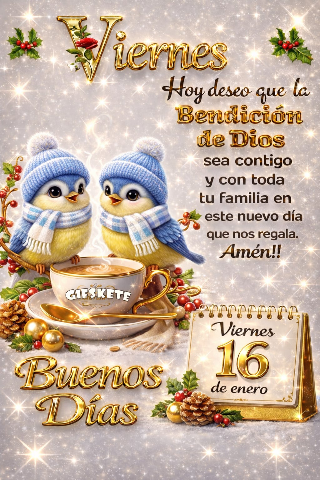 Viernes Hoy deseo que la bendición de Dios sea contigo y con toda tu familia en este nuevo día que nos regala. ¡¡Amén!! Buenos días.