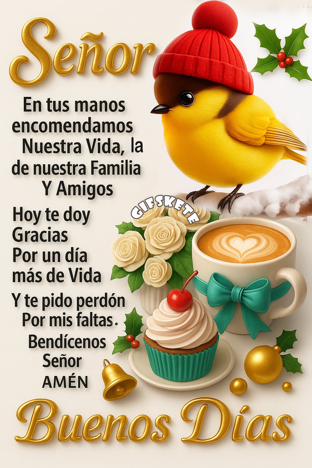 Señor En tus manos encomendamos nuestra vida, la de nuestra familia y amigos. Hoy te doy gracias por un día más de vida. Y te pido perdón por mis faltas. Bendícenos Señor. AMÉN Buenos...
