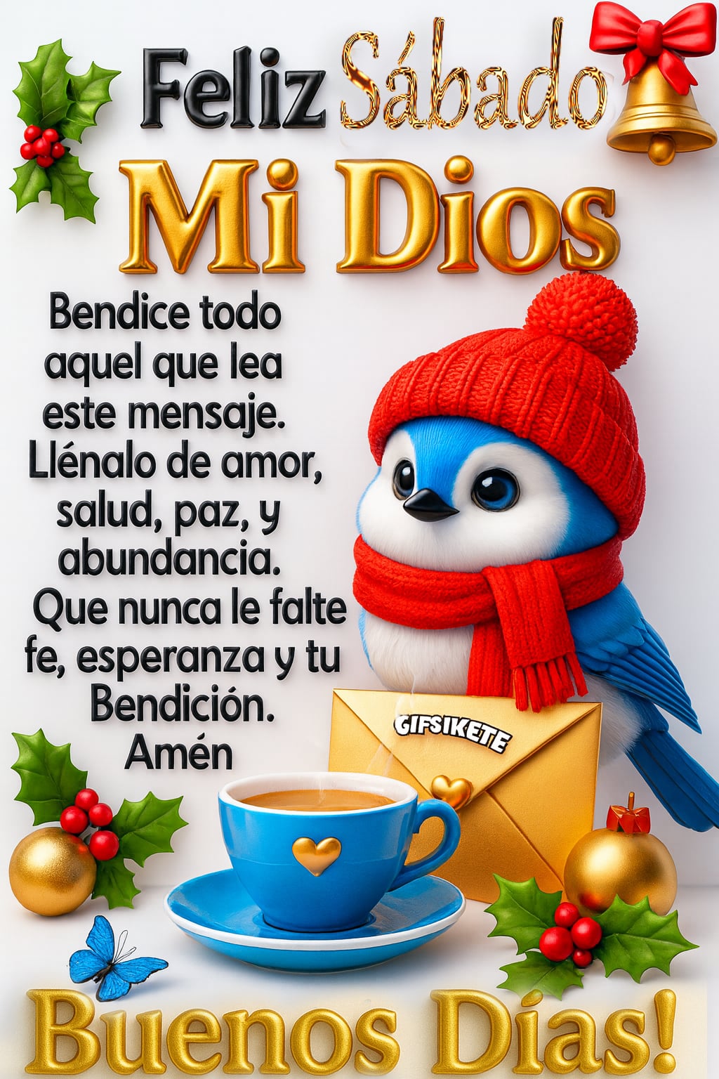 ¡Feliz Sábado! Mi Dios, bendice a todo aquel que lea este mensaje. Llénalo de amor, salud, paz y abundancia. Que nunca le falte fe, esperanza y tu bendición. Amén ¡Buenos días!