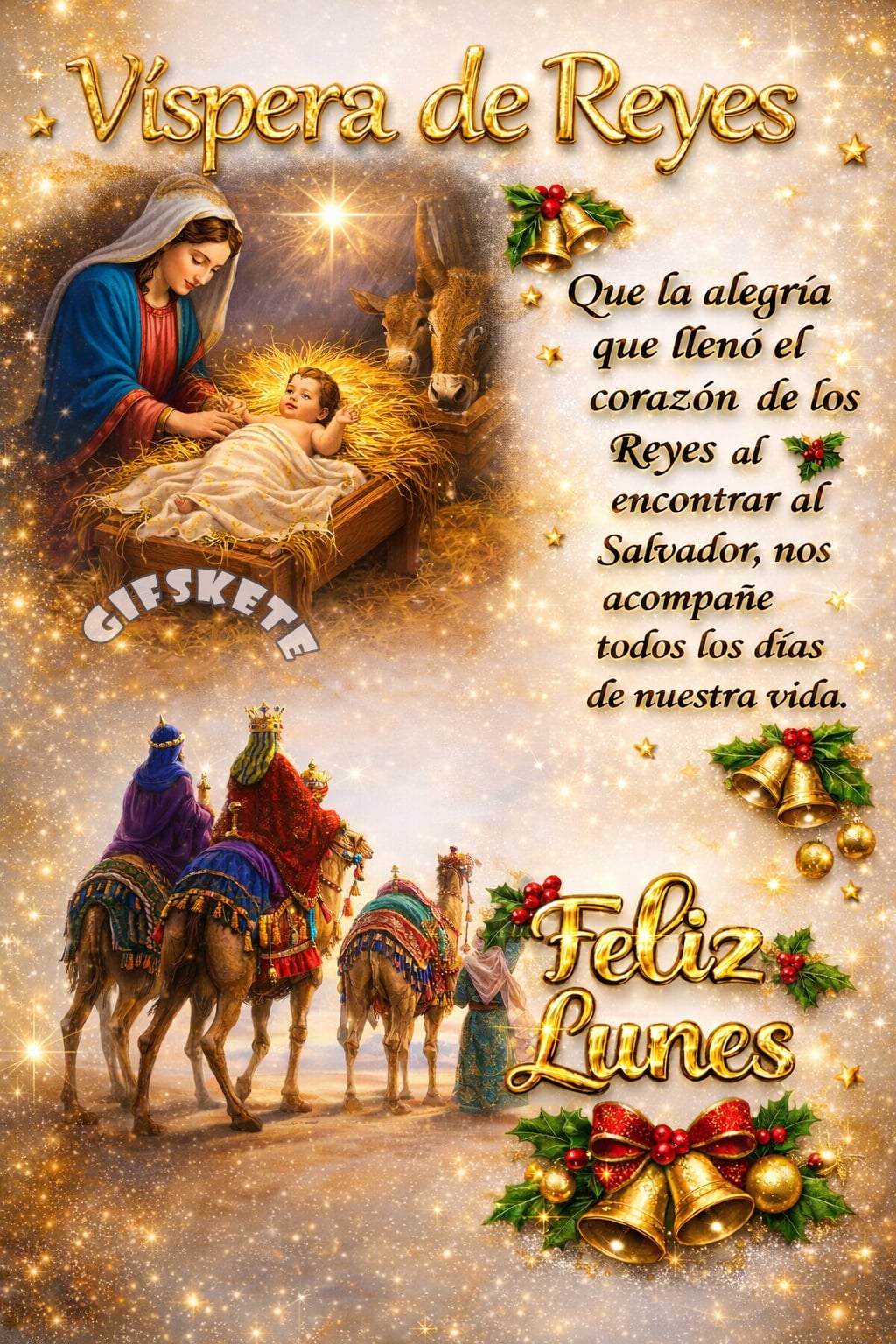 Víspera de Reyes Que la alegría que llenó el corazón de los Reyes al encontrar al Salvador nos acompañe todos los días de nuestra vida. Feliz lunes y una bendecida semana.