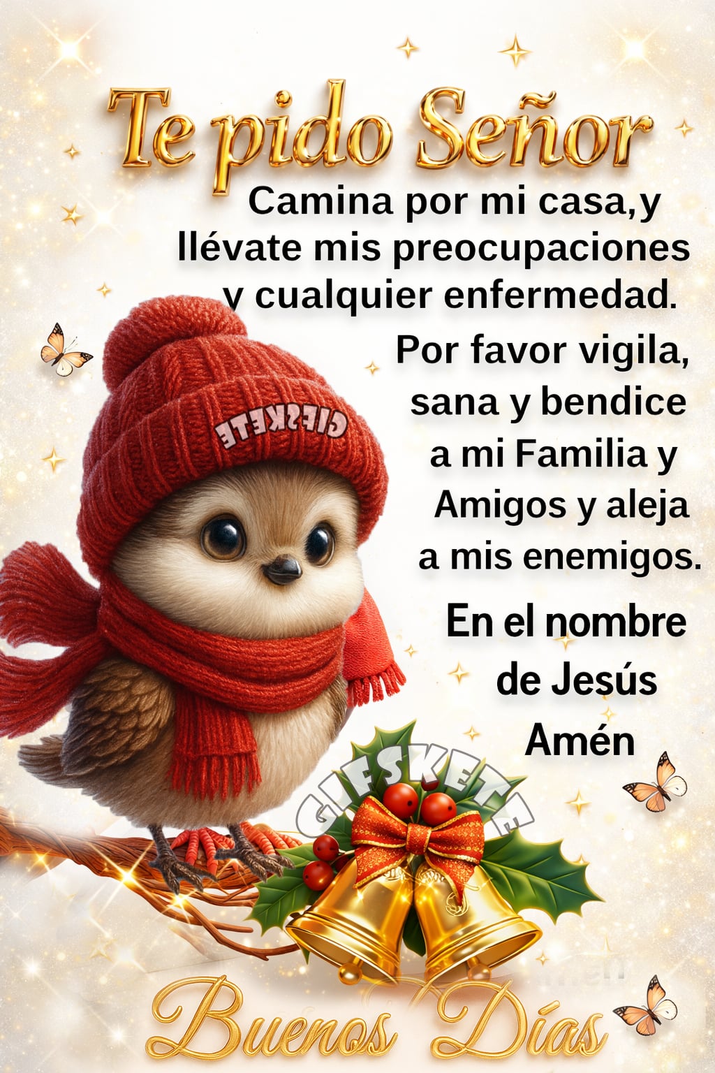 Te pido, Señor, camina por mi casa, y Llévate mis preocupaciones. Y cualquier enfermedad. Por favor, vigila, sana y bendice a mi familia y amigos y aleja a mis enemigos. En el nombre de...
