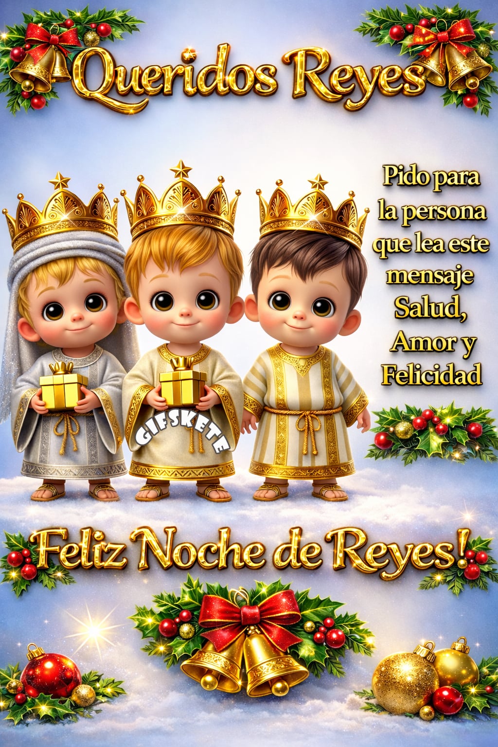 Queridos Reyes Pido para la persona que lea este mensaje Salud, Amor y Felicidad Feliz Noche de Reyes!
