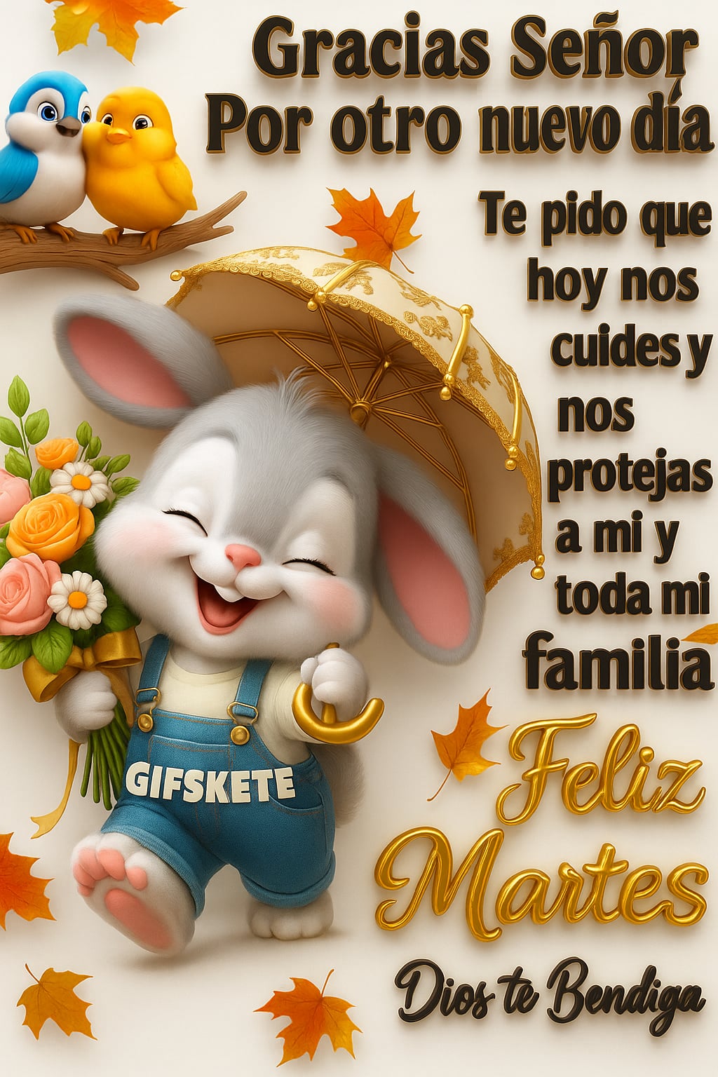 Gracias Señor, por otro nuevo día Te pido que hoy nos cuides y nos protejas a mí y a toda mi familia Feliz martes Dios te bendiga