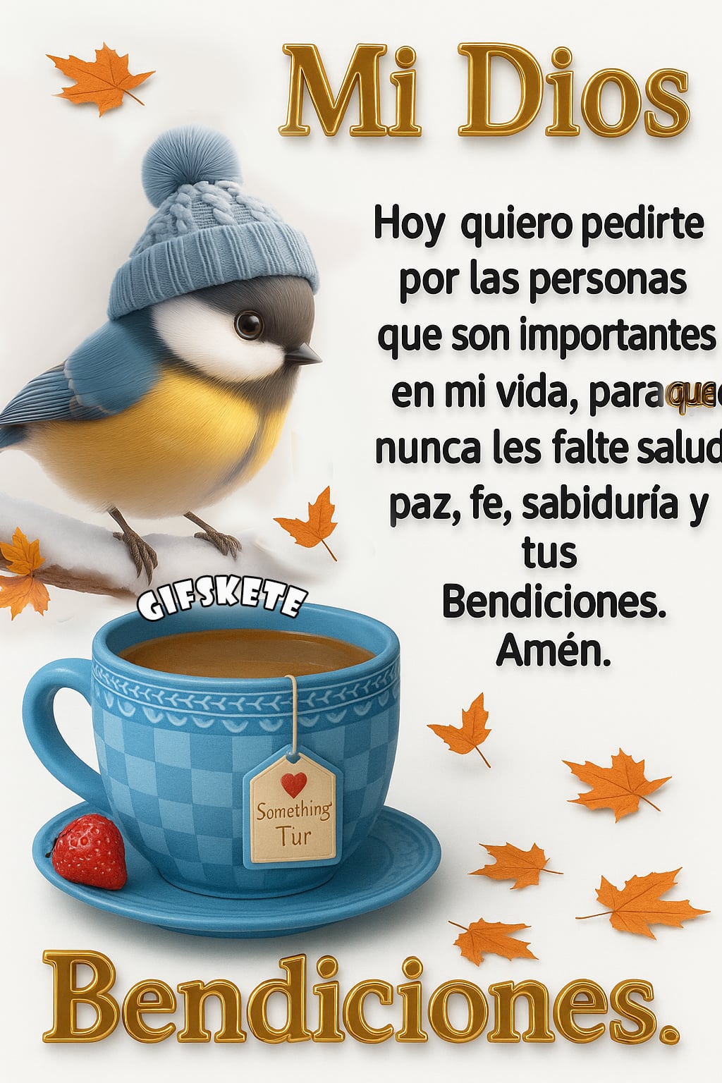 Mi Dios, hoy quiero pedirte por las personas que son importantes en mi vida, para que nunca les falte salud, paz, fe, sabiduría y tus bendiciones. Amén. Bendiciones.