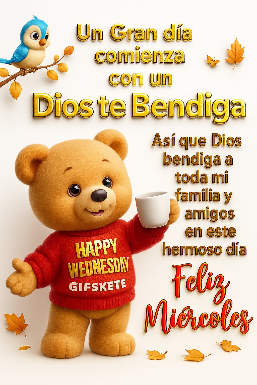 Un Gran día comienza con un Dios te Bendiga Así que Dios bendiga a toda mi familia y amigos en este hermoso día Feliz Miércoles
