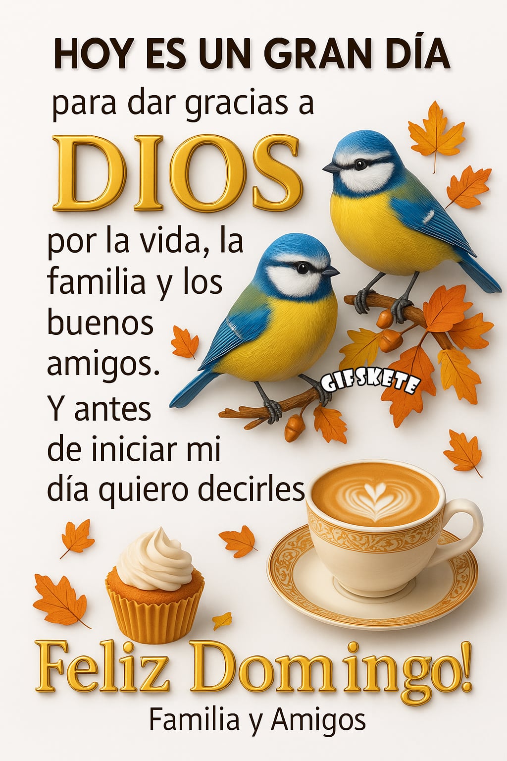 HOY ES UN GRAN DÍA para dar gracias a DIOS por la vida, la familia y los buenos amigos. Y antes de iniciar mi día, quiero decirles ¡Feliz domingo! Familia y amigos