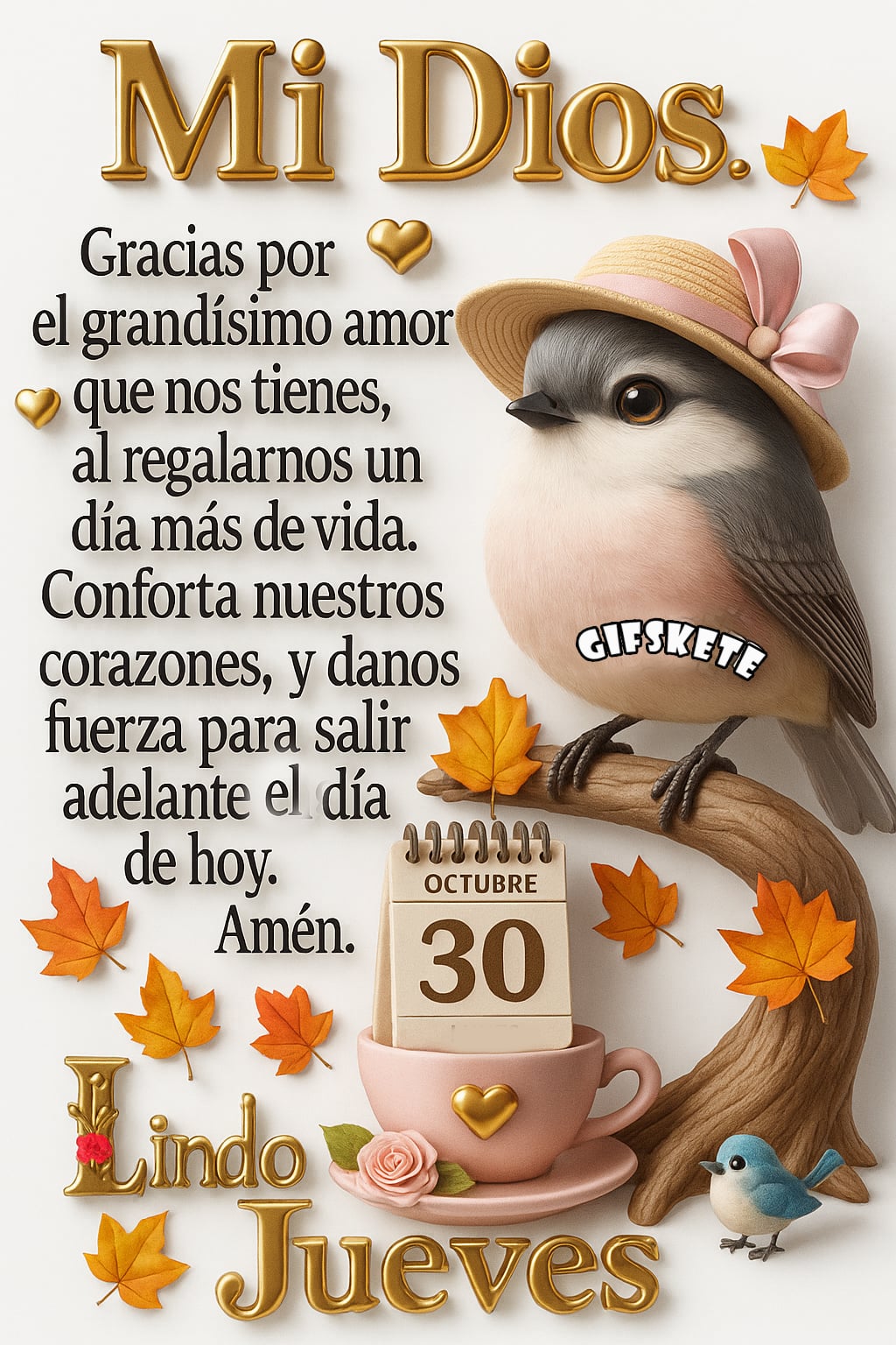 ¡Mi Dios! Gracias por el grandísimo amor que nos tienes, al regalarnos un día más de vida. Conforta nuestros corazones, y danos fuerza para salir adelante el día de hoy. Amén. Lindo jueves.