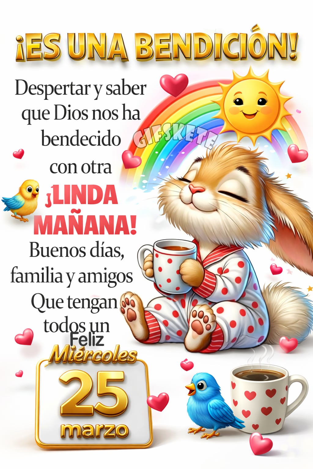 ¡ES UNA BENDICIÓN! Despertar y saber que Dios nos ha bendecido con otra ¡LINDA MAÑANA! Buenos días, familia y amigos. Que tengan todos un feliz Miércoles 25 de marzo Hermoso miércoles.