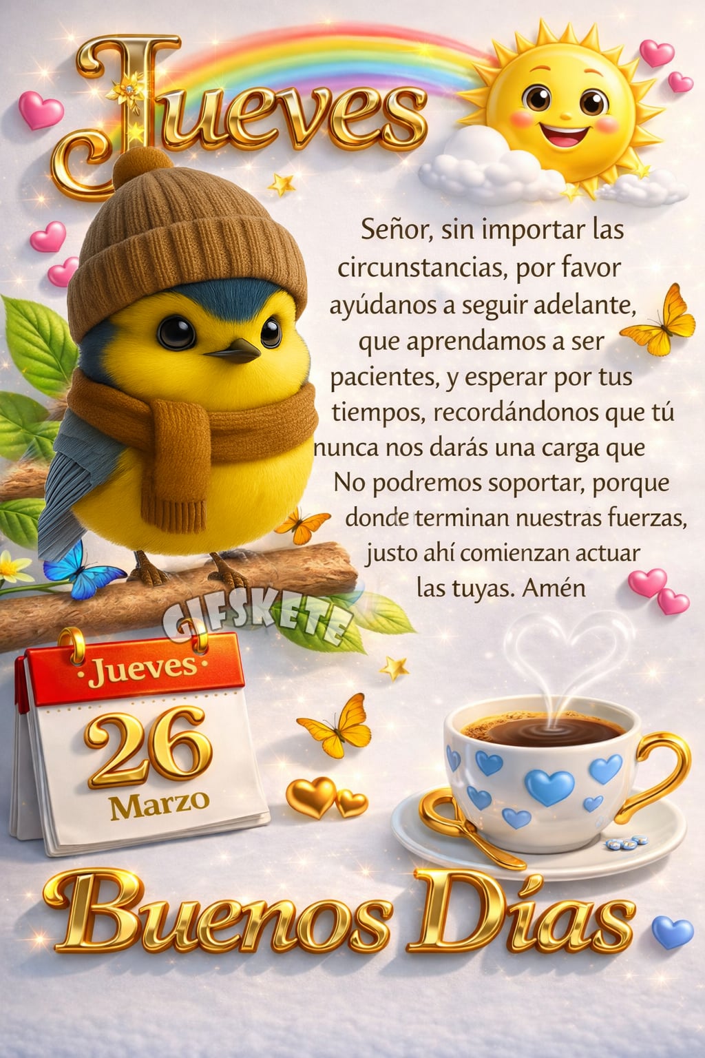 ¡Buenos días, madrugadores! Te deseo un lindo día con mucha paz y bendición. FELIZ JUEVES PARA TODO Jueves 26 de marzo