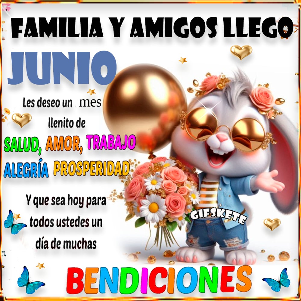 Familia y Amigos Llego Junio Les deseo un mes llenito de salud, amor, trabajo, alegría, prosperidad y que sea hoy para todos ustedes un día de muchas Bendiciones