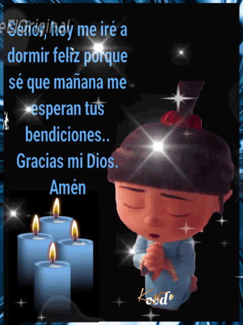 Esta noche antes de ir a descansar, pido que ilumines mi caminar de cada día , se que me proteges porque tú eres mi escudo y que mientras duermo tu estas a mi lado ,bendice a mi familia y cuida siempre de ellos, danos una noche tranquila y la oportunidad de levantarnos con Alegría el día de mañana ,amén.