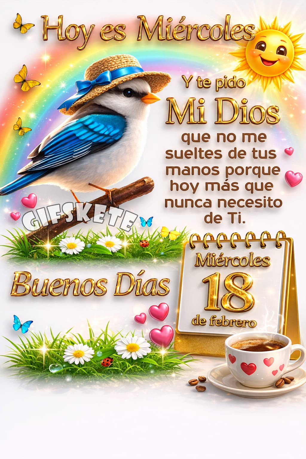 Hoy es Miércoles Y te pido, mi Dios. Que no me sueltes de tus manos porque hoy más que nunca necesito de Ti. Buenos Días Miércoles 18 de febrero. Spread the...