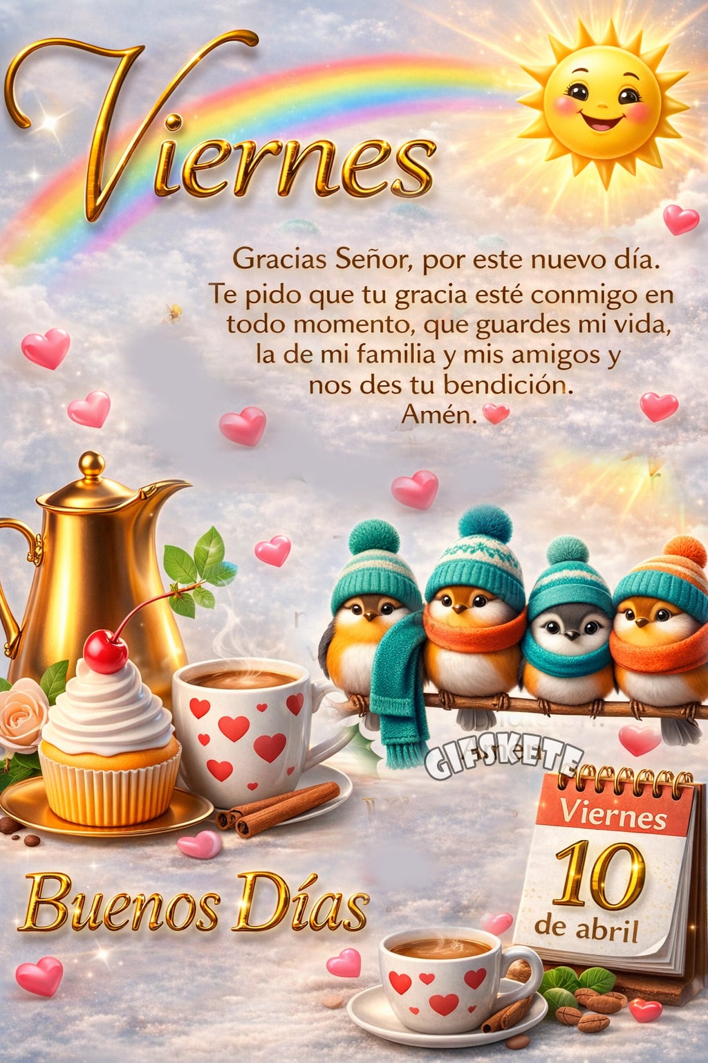 Viernes Gracias Señor, por este nuevo día. Te pido que tu gracia esté conmigo en todo momento, que guardes mi vida, la de mi familia y mis amigos y nos des tu bendición. Amén....