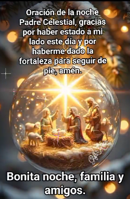Oración de la noche Padre Celestial, gracias por haber estado a mi lado este día y por haberme dado la fortaleza para seguir de pie, amén. Bonita noche, familia y amigos. Spread the love