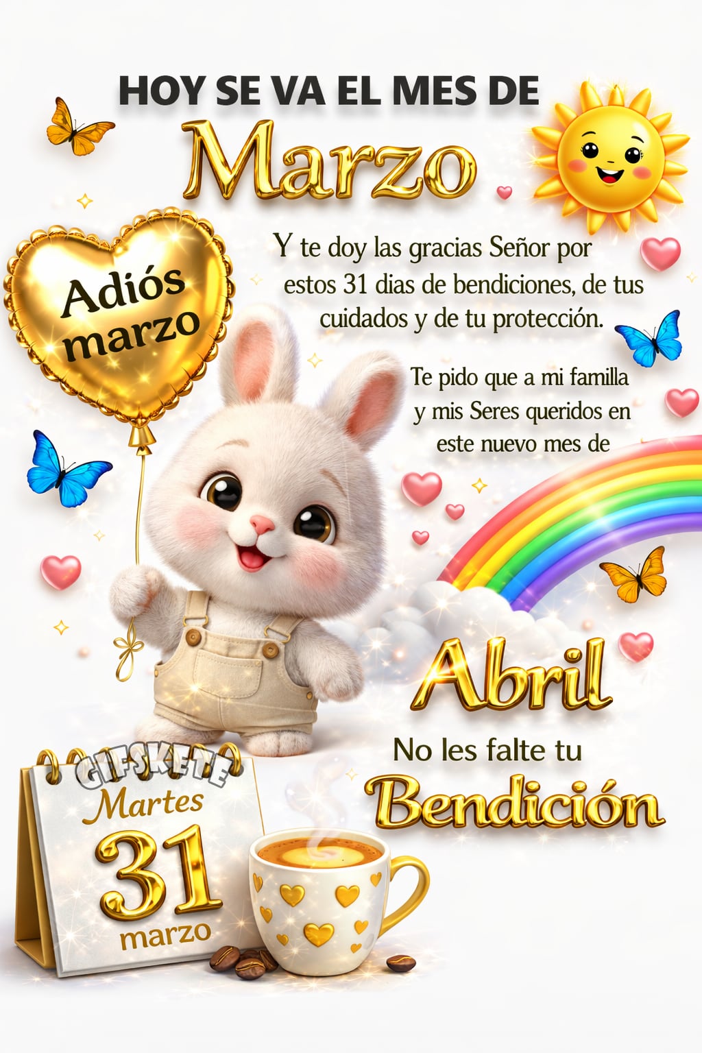 HOY SE VA EL MES DE MARZO. Adiós, marzo. Y te doy las gracias, Señor, por estos 31 días de bendiciones, de tus cuidados y de tu protección. Te pido que a mi familia...