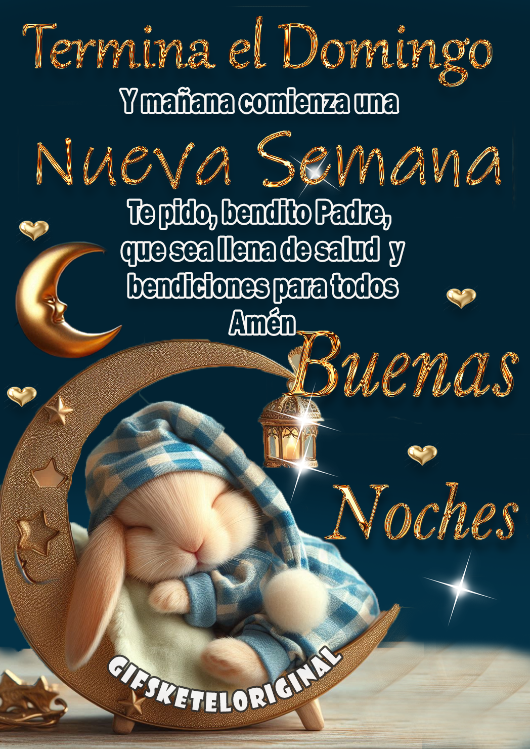 Termina el domingo Y mañana comienza una Nueva semana Te pido, bendito Padre, que sea llena de salud y bendiciones para todos. Amén Buenas noches Spread the love