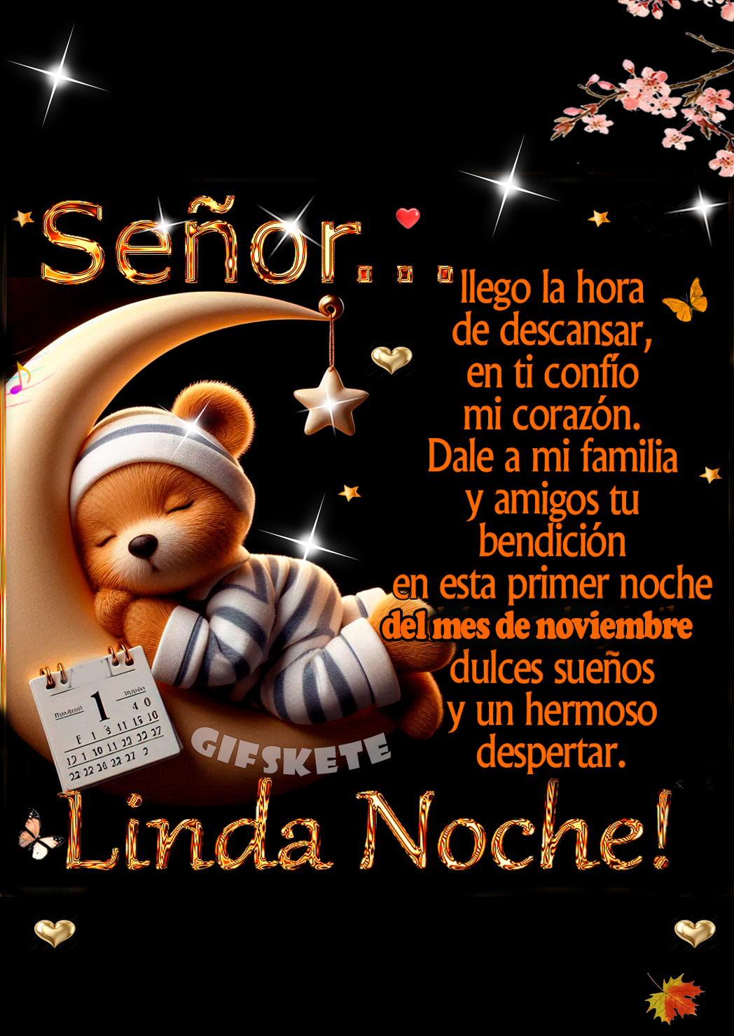 Señor Llegó la hora de descansar, en ti confío mi corazón. Dale a mi familia y amigos tu bendición en esta primera noche del mes de noviembre, dulces sueños y un hermoso despertar. ¡Linda...