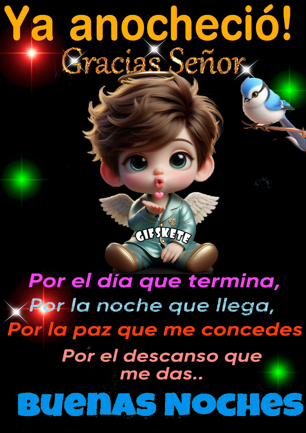 ¡Ya anocheció! Gracias Señor Por el día que termina, Por la noche que llega, Por la paz que me concedes Por el descanso que me das. BUENAS NOCHES Spread the love