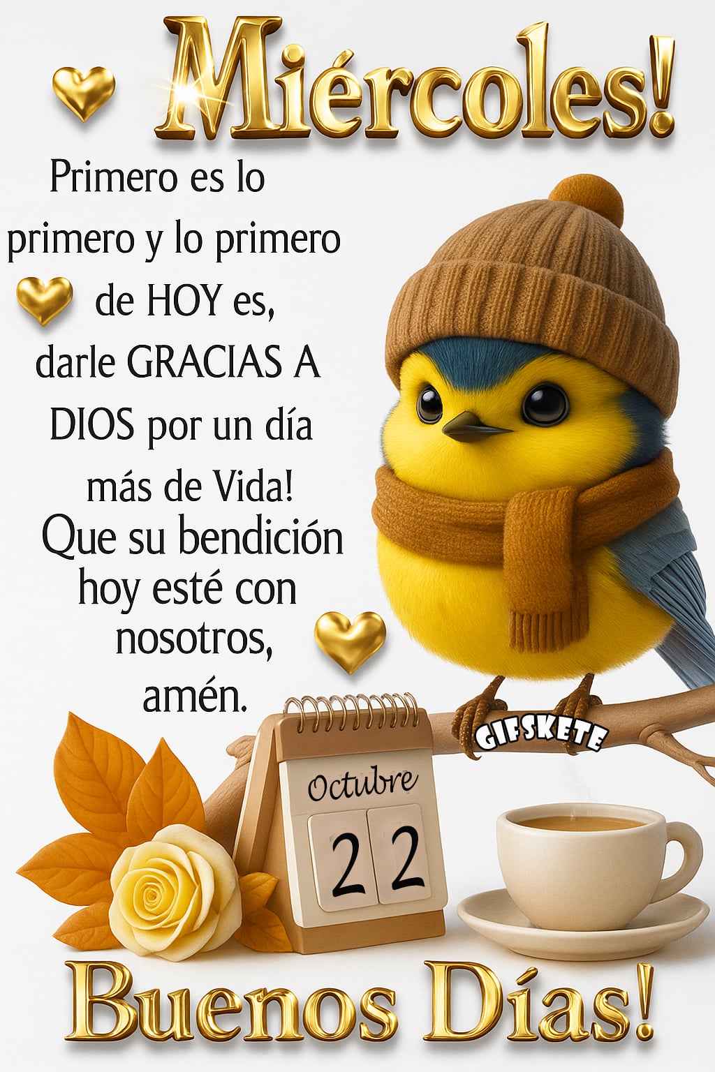 ¡Miércoles! ¡Primero es lo primero y lo primero de HOY es, darle GRACIAS A DIOS por un día más de vida. Que su bendición hoy esté con nosotros, amén. ¡Buenos días! Spread the...