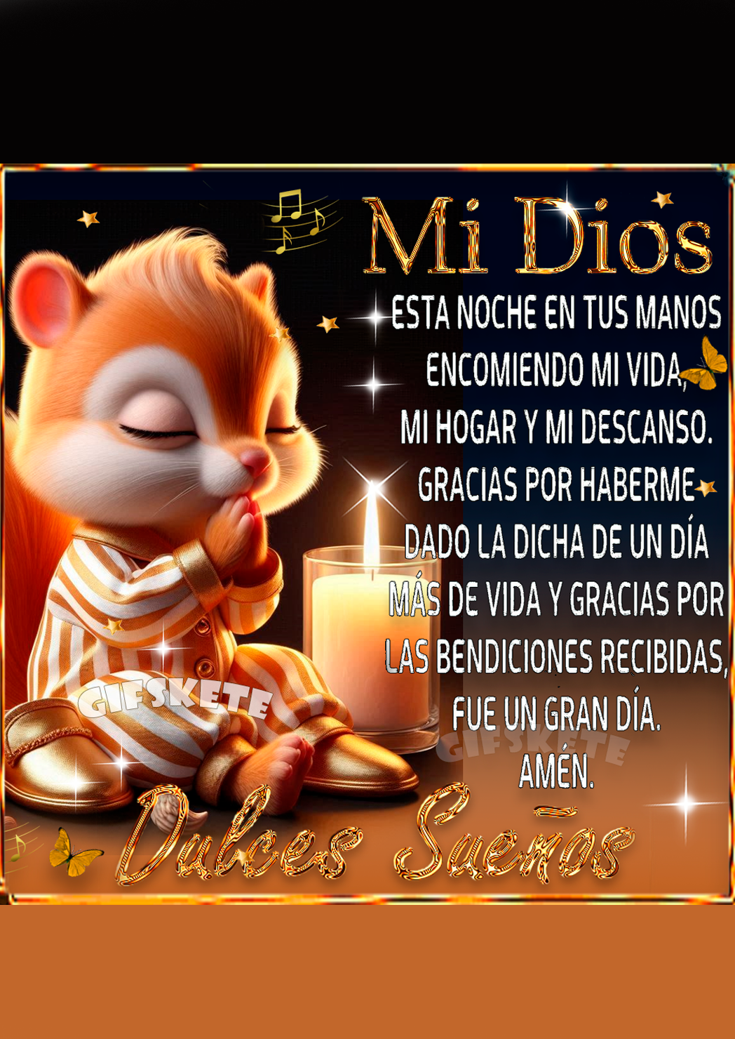 ¡Mi Dios! esta noche en tus manos encomiendo mi vida, mi hogar y mi descanso. Gracias por haberme dado la dicha de un día más de vida y gracias por las bendiciones recibidas, fue...