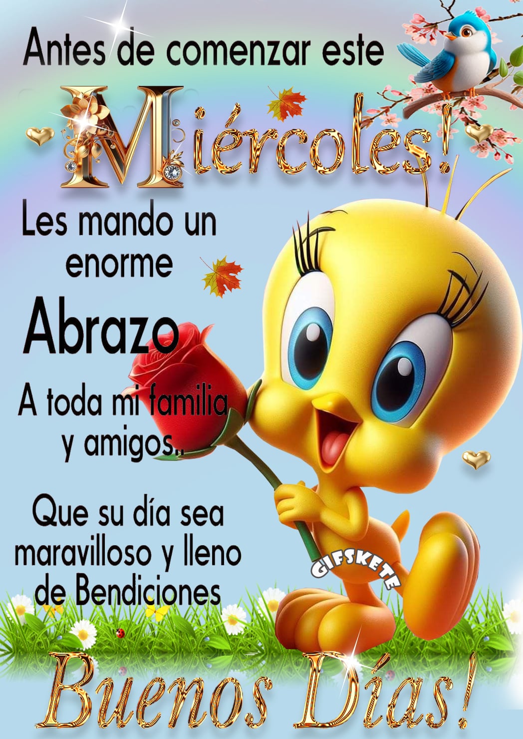 Antes de comenzar este Miércoles Les mando un enorme abrazo A toda mi familia y amigos. Que su día sea maravilloso y lleno de bendiciones Buenos Días. Spread the love