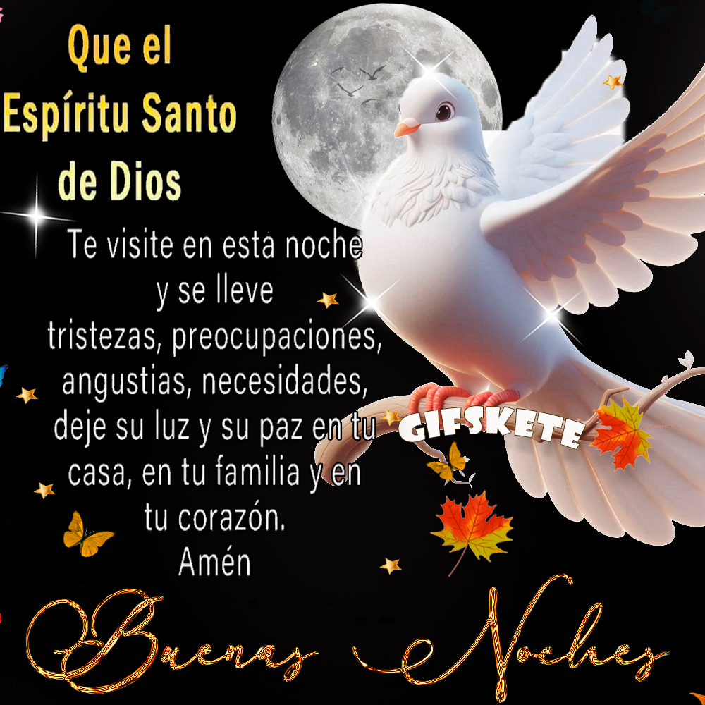 Que el Espíritu Santo de Dios te visite en esta noche y se lleve tristezas, preocupaciones, angustias, necesidades, deje su luz y su paz en tu casa, en tu familia y en tu corazón....
