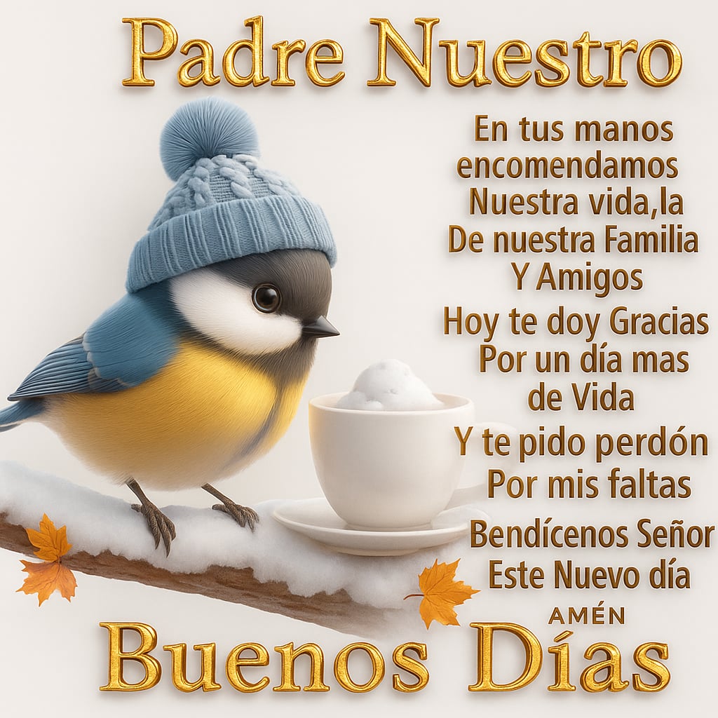 Padre Nuestro En tus manos encomendamos nuestra vida, la de nuestra familia y amigos. Hoy te doy gracias por un día más de vida. Y te pido perdón por mis faltas Bendícenos, Señor, este...