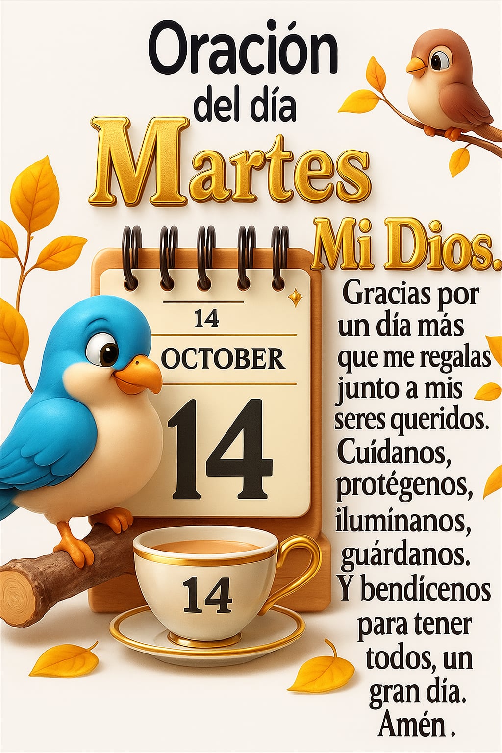 Oración del día martes ¡Mi Dios! Gracias por un día más que me regalas junto a mis seres queridos. Cuídanos, protégenos, ilumínanos, guárdanos. Y bendícenos para tener todos, un gran día. Amén. Spread...