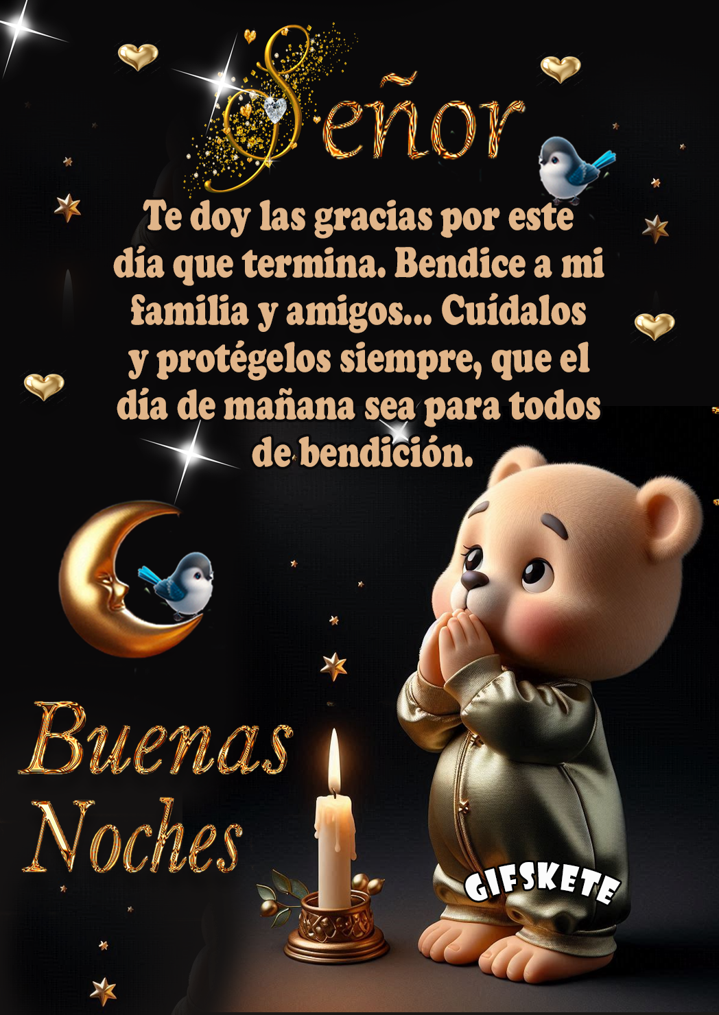 Padre Te doy las gracias por este día que termina Bendice a mi familia y amigos… Cuídalos y protégelos siempre, que el día de mañana sea para todos de bendición. Spread the love