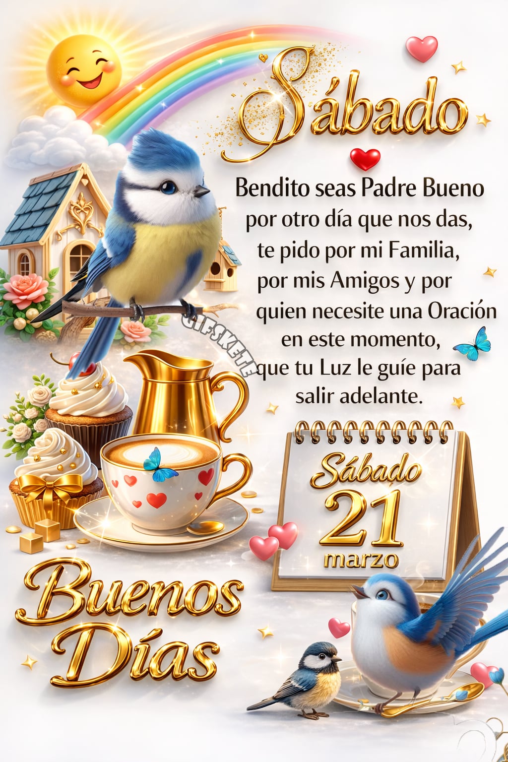 Sábado Bendito seas, Padre Bueno, por otro día que nos das. Te pido por mi familia, por mis amigos y por quien necesite una Oración en este momento, que tu luz le guíe para...