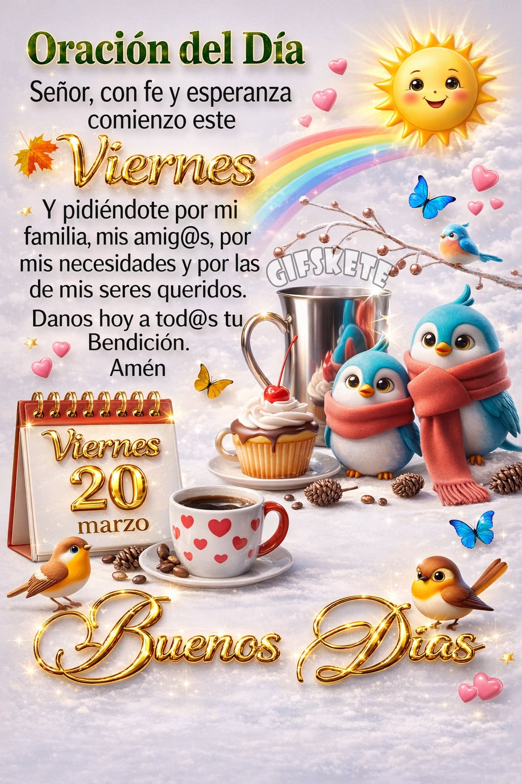 Oración del Día Señor, con fe y esperanza comienzo este viernes. Y pidiéndote por mi familia, mis amig@s, por mis necesidades y por las de mis seres queridos. Amén Spread the love