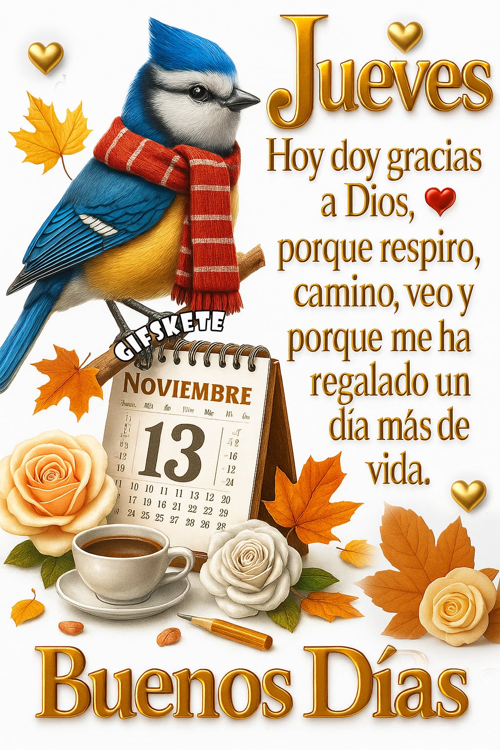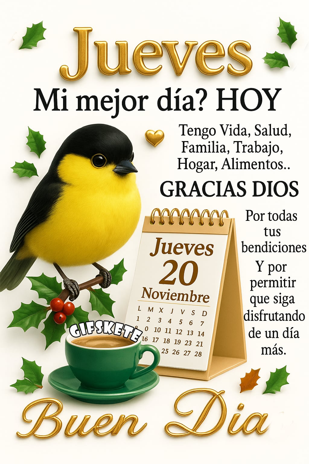 Jueves Hoy doy gracias a Dios, porque respiro, camino, veo y porque me ha regalado un día más de vida. Buenos Días