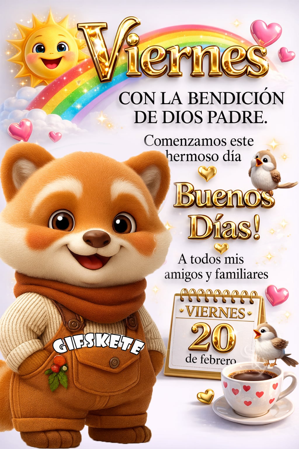 Viernes CON LA BENDICIÓN DE DIOS PADRE. Comenzamos este hermoso día Buenos Días! A todos mis amigos y familiares VIERNES 20 de febrero