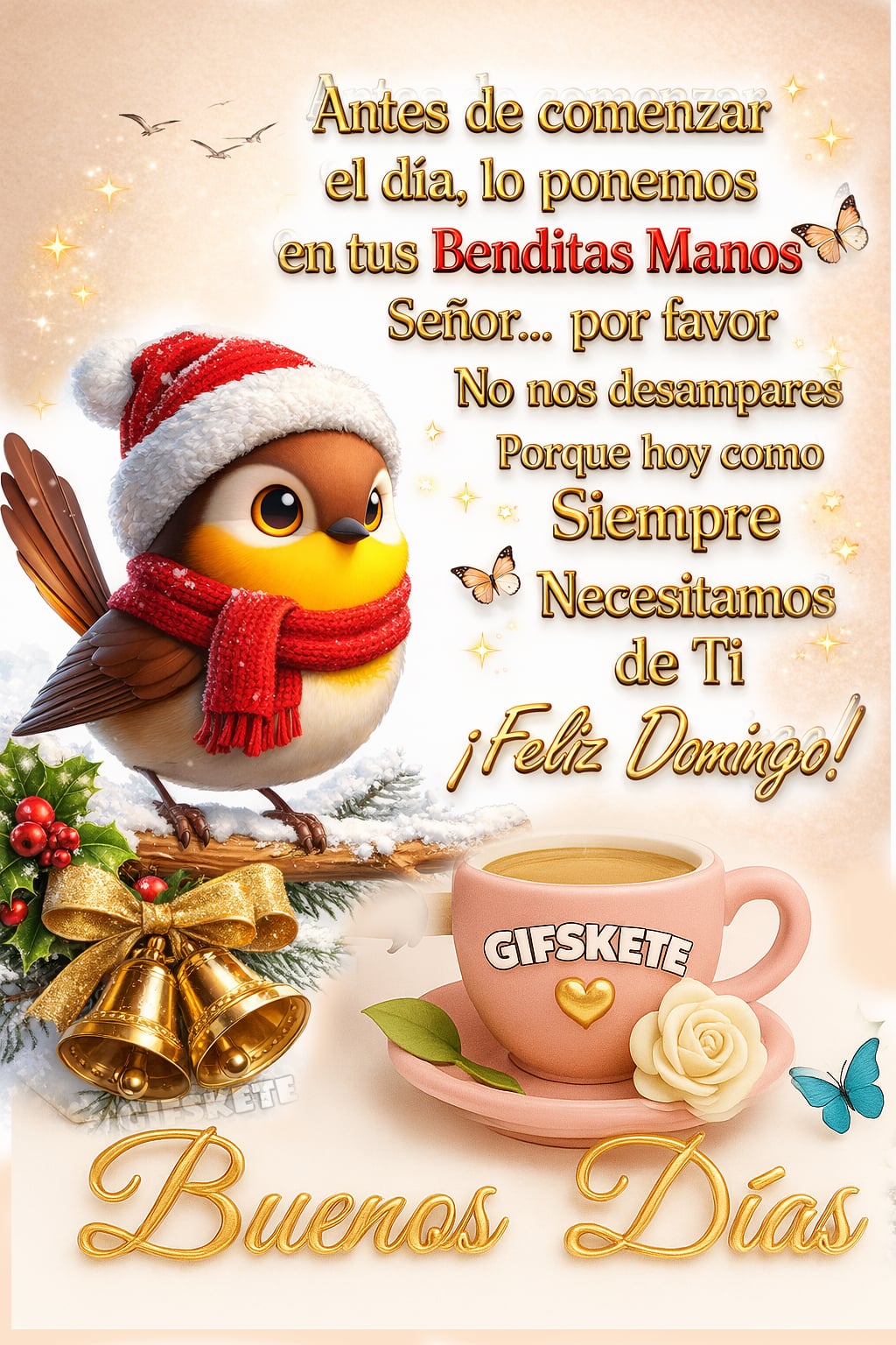 Antes de comenzar el día, lo ponemos en tus Benditas Manos, Señor… por favor. No nos desampares, porque hoy como siempre Necesitamos de Ti ¡Feliz domingo! Buenos días.