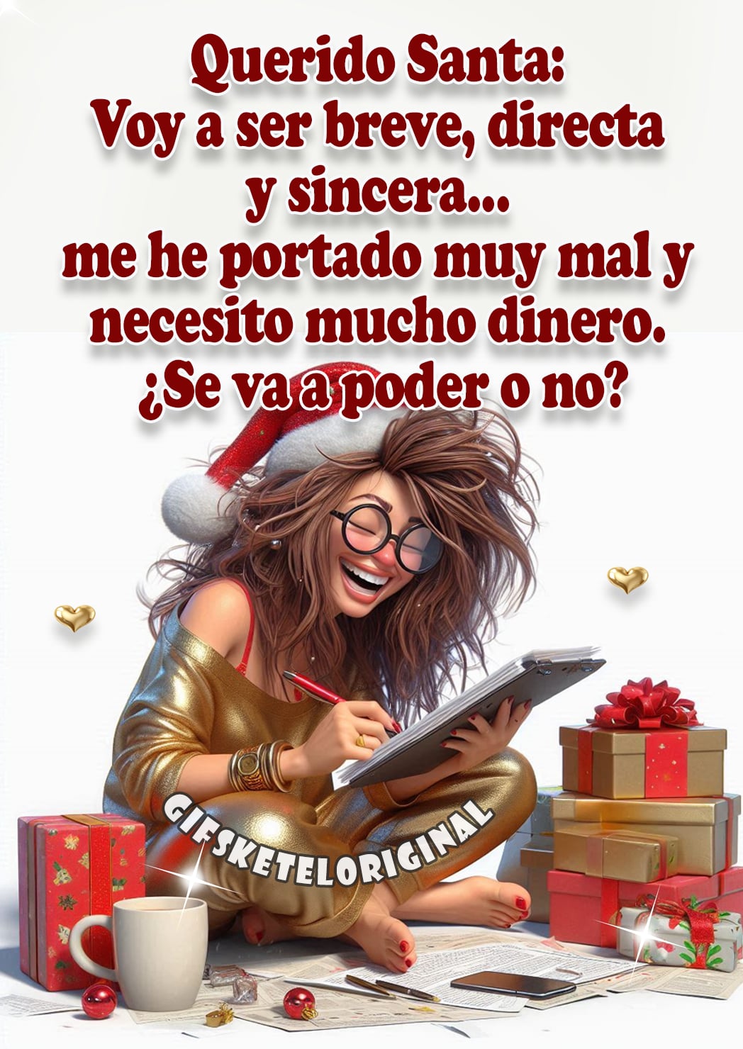 Querido Santa: Voy a ser breve, directa y sincera… me he portado muy mal y necesito mucho dinero. ¿Se va a poder o no?