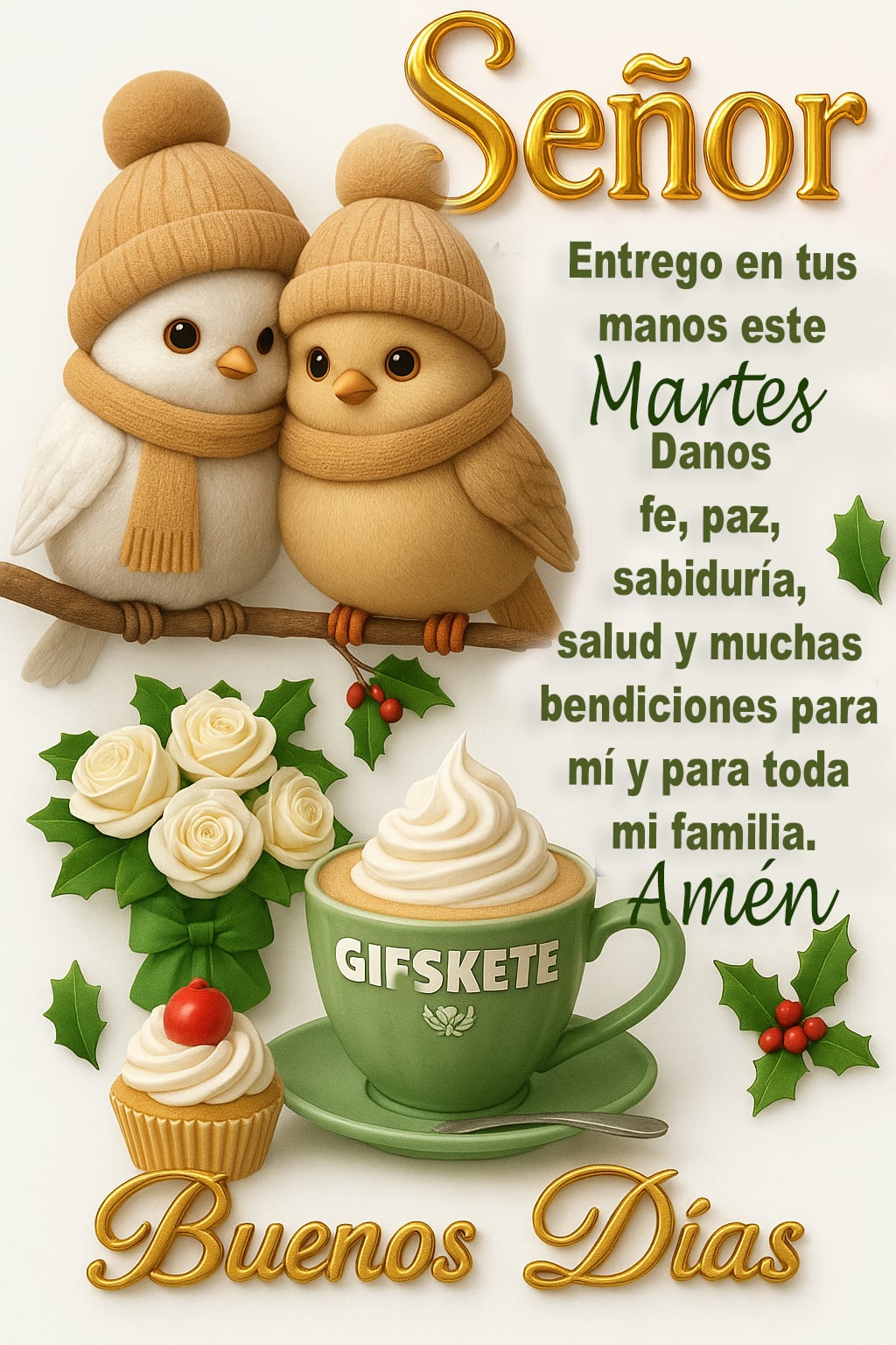 Señor Entrego en tus manos este martes. Danos fe, paz, sabiduría, salud y muchas bendiciones para mí y para toda mi familia. Amén. Buenos días.